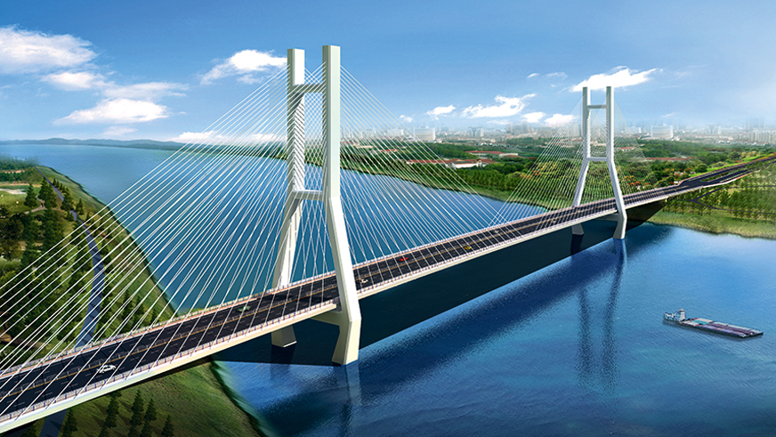 濟(jì)南黃河公路大橋采用雙塔雙索面等高鋼桁架斜拉橋結(jié)構(gòu)形式,全長(zhǎng) 1028 米,主跨 488 米,主塔高 168 米,主梁采用整體式鋼桁梁斷面,上下兩層,上層橋面為雙向八車(chē)道公路橋面,下層為雙線軌道橋面。濟(jì)南黃河公路大橋是貫徹落實(shí)黃河流域生態(tài)保護(hù)和高質(zhì)量發(fā)展的國(guó)家戰(zhàn)略深入實(shí)施的重大項(xiàng)目,是加快濟(jì)南“擁河發(fā)展”、奮力開(kāi)啟“黃河時(shí)代”的重要保障。